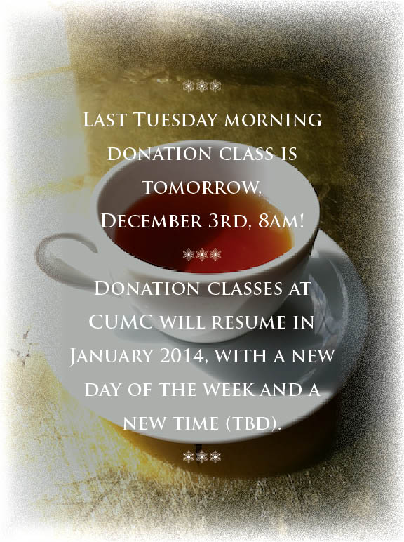 - Tuesday morning class is now donation-based! And the proceeds will go to a really great Austin non-profit. The details are still being honed, but this non-profit will be announced soon.